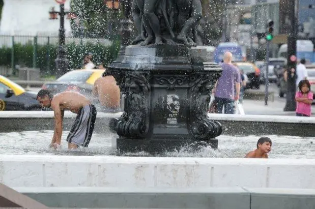 El Servicio Meteorológico Nacional (SMN) emitió una alerta roja por las fuertes temperaturas en gran parte del país. Para hoy, la máxima en Capital Federal y alrededores superaría los 35 grados, con una elevada sensación térmica. El calor continuaría durante toda la semana.