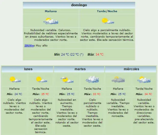 Para el martes se espera cielo nublado, tiempo inestable, con mínimas de 25 y máximas de 33 grados.