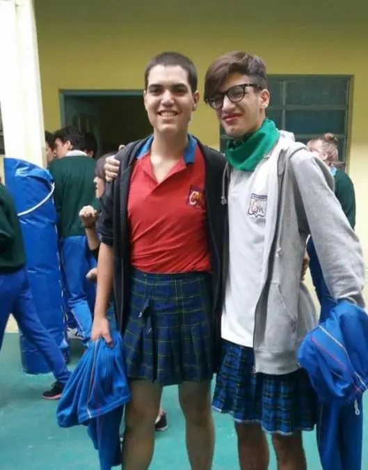 Bajo la consigna ¡faldas cortas para todas y todos!, el lunes los alumnos hicieron una "intervención" y se calzaron las polleras, mientras las mujeres vistieron pantalones para darle una lección a las autoridades del colegio y demostrarles que ellas no son responsables ante un abuso.