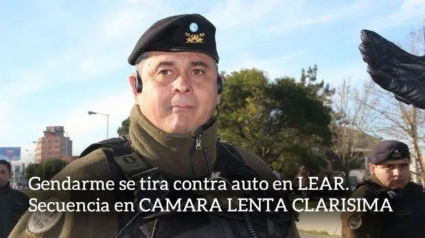 - Me apresto a poner primera marcha y arrancar el vehículo cuando, súbitamente, un gendarme de enormes proporciones directamente se arrojó sobre el vehículo Chevrolet que conducía. Se trató de López Torales. Con toda su humanidad se había tirado sobre el capot provocando una importante abolladura y con su codo golpeó fuertemente el parabrisas, haciendo estallar los cristales.