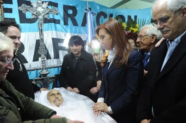 La ex presidenta se hizo presente en el velatorio del ex líder de la CGT, Raimundo Ongaro.
