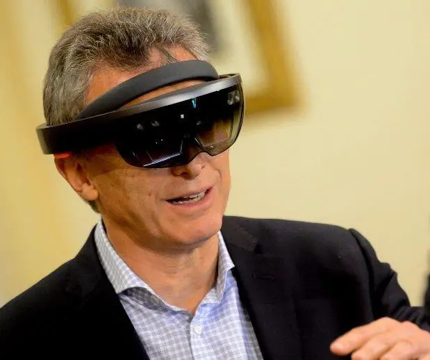 El presidente Mauricio Macri observó hoy los avances de la obra del viaducto del ferrocarril Belgrano Sur y la estación Sáenz a través de hologramas en alta definición, denominados HoloLens, desde la Casa Rosada. Lo hizo durante una reunión con representantes de la empresa Microsoft, quienes hicieron una presentación del dispositivo.
