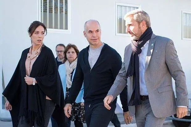 El jefe de Gobierno porteño y la gobernadora de la provincia de Buenos Aires, junto al ministro de Interior.