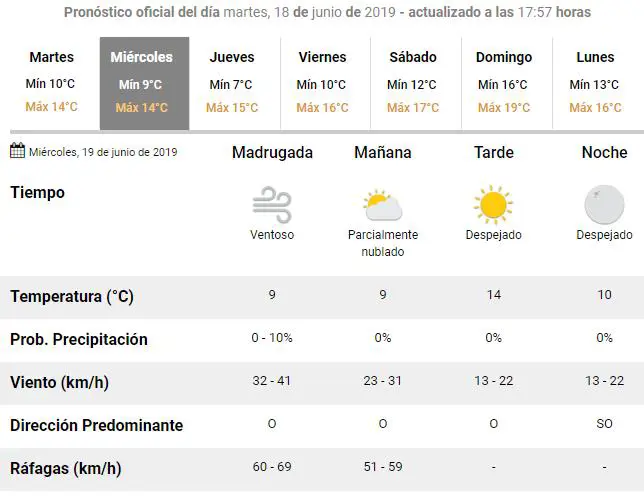 Aunque a la madrugada estará ventoso y durante la mañana todavía habrá nubes, hacia el mediodía el tiempo mejorará bastante. En cuanto a la temperatura, la mínima será de 9°C, y la máxima de 14°C.