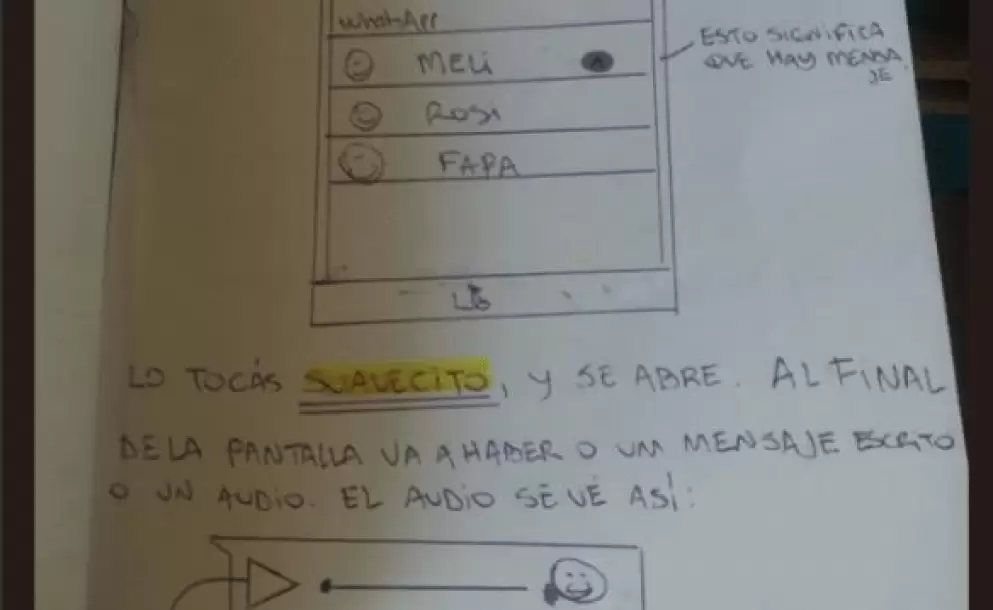 Melina Corbetto quiso ayudar a su abuela de 82 años para que se modernice. Evaluó cómo lograr que sea clara. Para eso armó un manual y lo compartió en las redes. "Le hice una guía a mi abuela para que me mande audios cuando esté de viaje. Ahora tengo miedo de que el Moma o algún museo me reclame esta obra de arte moderno y mi abue no pueda aprender", escribió la joven en su cuenta de Twitter.