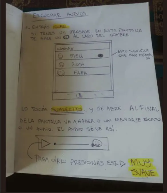 En su tutorial Melina explica cómo usar WhatsApp para enviar o recibir audios. Pero lo hace de una manera muy tierna, suma dibujos, comentarios y todo con mucho cariño.