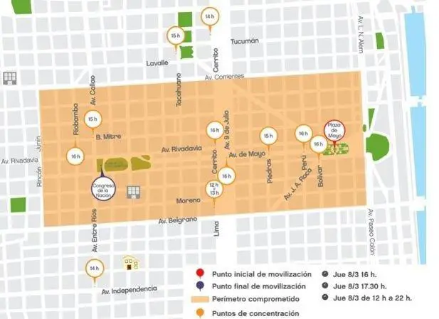 Las diversas organizaciones que participarán de la multitudinaria marcha que se espera este jueves comenzarán a convocar a partir de las 12. Está previsto que a las 16 inicie la movilización desde la Plaza de Mayo hacia el Congreso dela Nación.