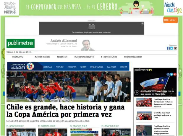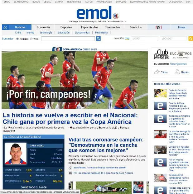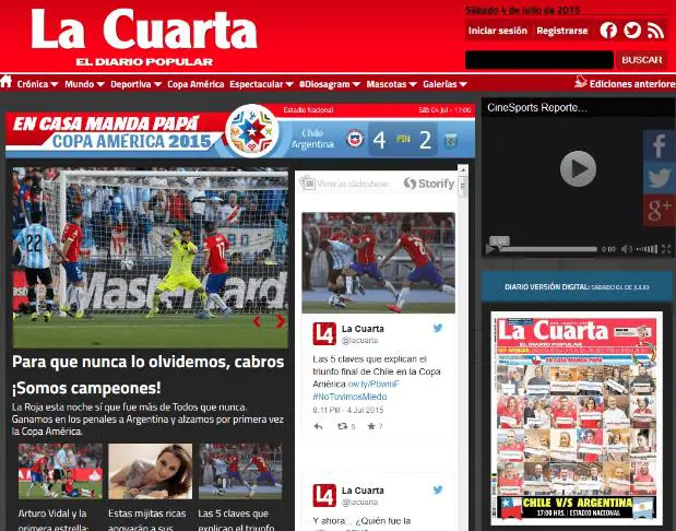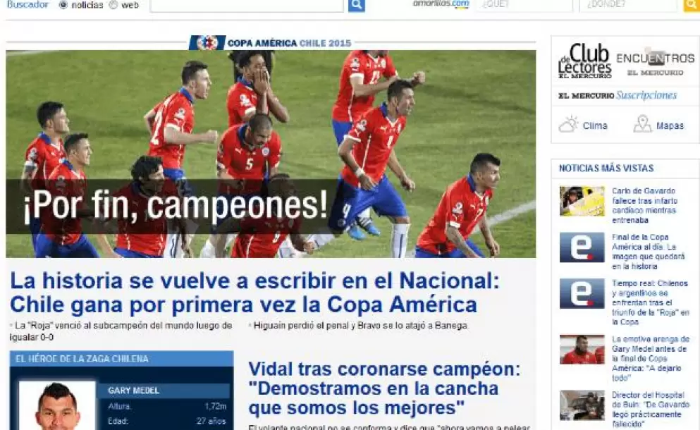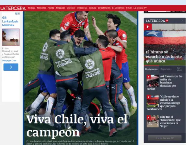 Historia es la palabra que más se repite en los títulos y bajadas de los diarios chilenos. Prácticamente todos usaron los mismos conceptos para celebrar el título del seleccionado local.