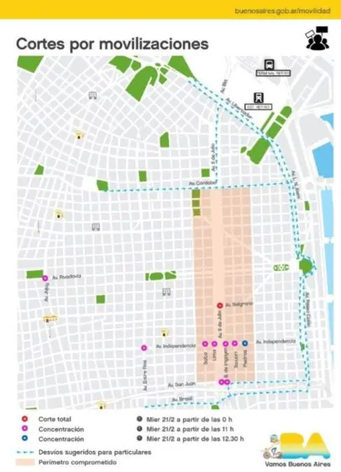 El mapa de los cortes en el centro porteño por la marcha de Moyano.
