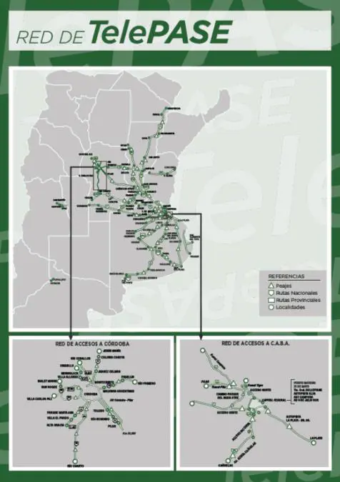 Este sistema electrónico funcionará en las principales rutas del país y en la red de accesos a las ciudades de Córdoba y Buenos Aires. El sistema le permitirá al usuario que pueda usar su pase para pagar de forma automática y sin detener su vehículo en cualquiera de los peajes incluidos en la red. Son casi 9000 km de red integrados por este sistema dinámico de pago.