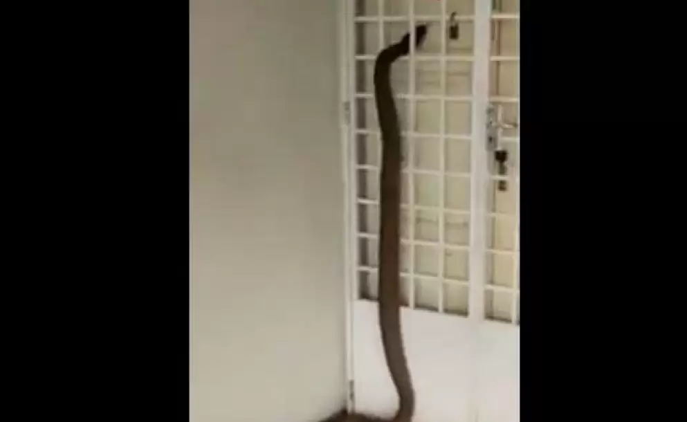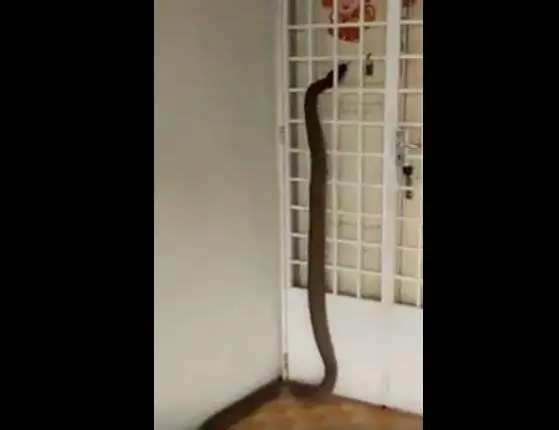 La cobra intentando ingresar por la puerta principal del hogar.