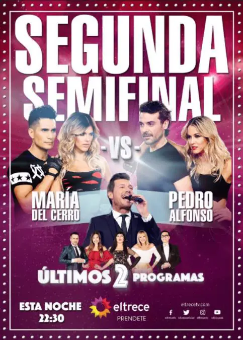 Ante un estudio repleto y bajo la mirada de los primeros finalistas del Bailando 2016, Pedro Alfonso y Flor Vigna, como también María Del Cerro y Nicolás Villalba, salieron a la pista con el único objetivo de superar la segunda semifinal del certamen y convertirse en los nuevos finalistas de la competencia que tiene paralizada a gran parte de los espectadores.