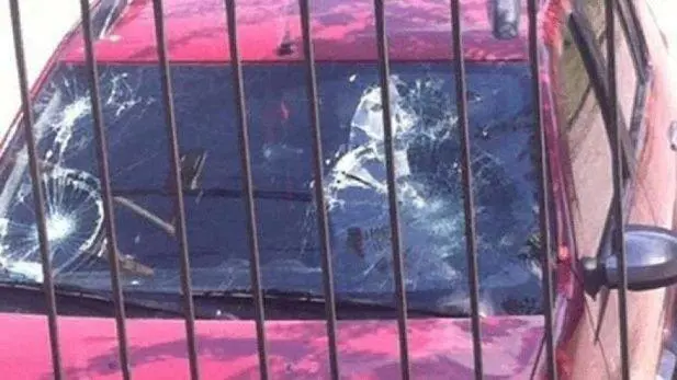 Año 2013 y, cuándo no, Naza envuelta en un escándalo. En esta oportunidad, fue con todo contra su ex pareja y padre de su hijo mayor, Daniel Agostini. El cantante de cumbia denunció que la rubia le había roto el auto y ahorcado al perro, como represalia porque un juez le había dado a él el resguardo del hijo de ambos. "Nazarena me ensucia de todos los colores y está buscándome. Gritó, rompió mi auto y ahorcó al perro. Esa locura no es buena para nadie", dijo a la prensa el ex líder de Sombras. La imagen del rodado habla por sí sola.