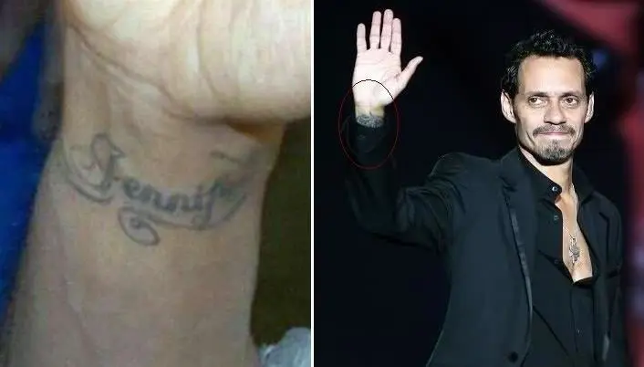 En febrero de 2004, Marco Antonio Muñiz Rivera recibió un pedido de su amiga Jennifer López que le pedía ayuda para producir la canción “Sway” para la banda sonora de la película “Shall we dance?”. Se enamoraron, y para junio de 2004 ya habían contraído matrimonio. Con la misma impulsividad con la que se casaron, él se tatuó el nombre de ella en su muñeca derecha, en letras románticas. En noviembre de 2007 JLo y Marc confirmaron oficialmente que estaban esperando gemelos. En abril de 2012 se separaron, y él hizo lo que pudo con su body art: mandó arabescos, la salida más habitual para este tipo de situaciones de emergencia dérmica.