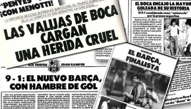 La diferencia de jerarquía, a la vista de cualquiera, en conjunto con la poca preparación de cara al encuentro y la pronta expulsión de Passucci cuando Boca ya estaba 0-1 concluyeron en la peor derrota de la historia de la institución: un 9-1 que, además, es la máxima goleada en los 59 años que la Joan Gamper se disputa (junto con el 8-0 a Santos). El tanto del honor lo metió el uruguayo Morena de penal a los 23' del ST. Los locales ni se mosquearon, iban ganando 7-0.