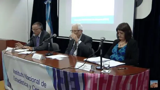 Jorge Todesca, Cynthia Pok y Fernando Cerro, en la conferencia de prensa del Indec.
