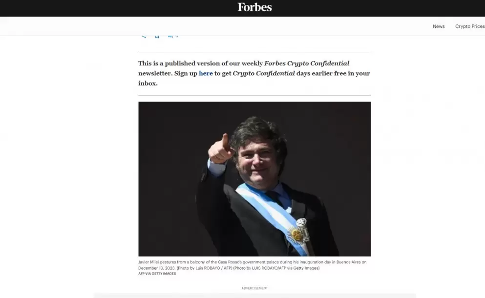 El escándalo de la criptomoneda $LIBRA que involucró al presidente Javier Milei -y a gran parte de su entorno- dejó de ser un tema local. La revista Forbes lo llevó a su portada digital con un título demoledor: "El escándalo de criptomonedas de 4.600 millones de dólares en Argentina; el mayor robo de criptomonedas de la historia". El artículo, firmado por Nina Bambysheva en la edición especializada Forbes Crypto Confidential, sostiene que el mandatario argentino "se enfrenta a una investigación por fraude tras promocionar una criptomoneda que colapsó en cuestión de horas, evaporando miles de millones de dólares en valor".