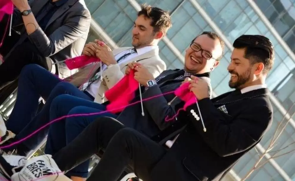 El fin de semana pasado, nueve de los miembros de la agrupación chilena “Hombres Tejedores” se reunieron en el barrio de Las Condes, en Santiago de Chile, para tejer. Es, claro, una de las actividades tipificada como "para mujeres", y por eso la eligieron. Su intención es, justamente, quebrar estereotipos en pos de una sociedad igualitaria en cuanto a las tareas asignadas para cada género. Es la primera vez que lo hacen como intervención urbana, tras reunirse muchas veces en ámbitos privados.