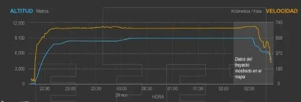 Según el sitio web Flytracker, la nave tenía combustible para recorrer 2.965 kilómetros y alcanzó a transitar una distancia de 2.975 kilómetros, excediéndose por 10 kilómetros en el cálculo inicial.
