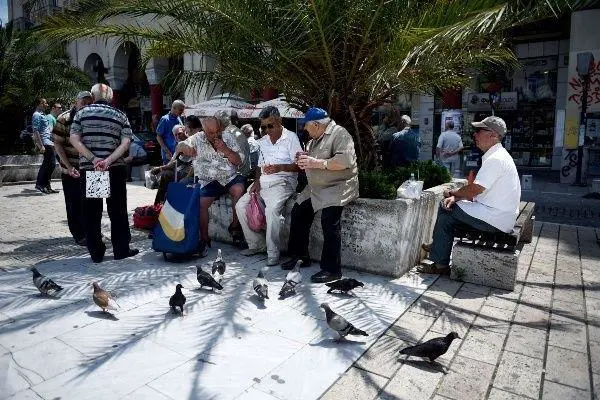 Un grupo de ancianos debaten la situación en Salónica, al norte de Grecia.