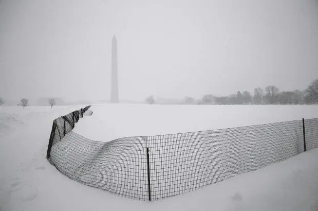 Monumento a Washington tapado por la inmensa cantidad de nieve.