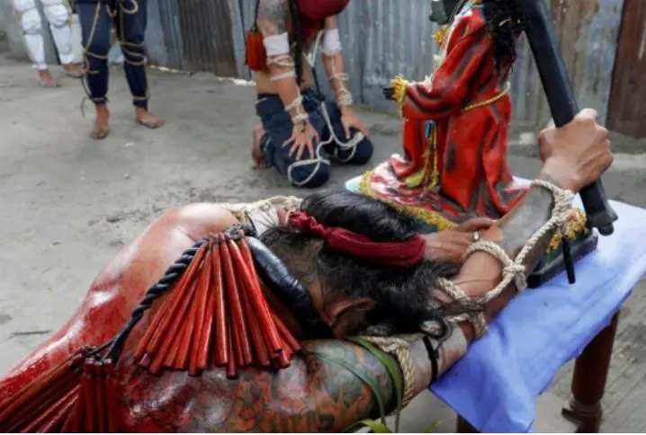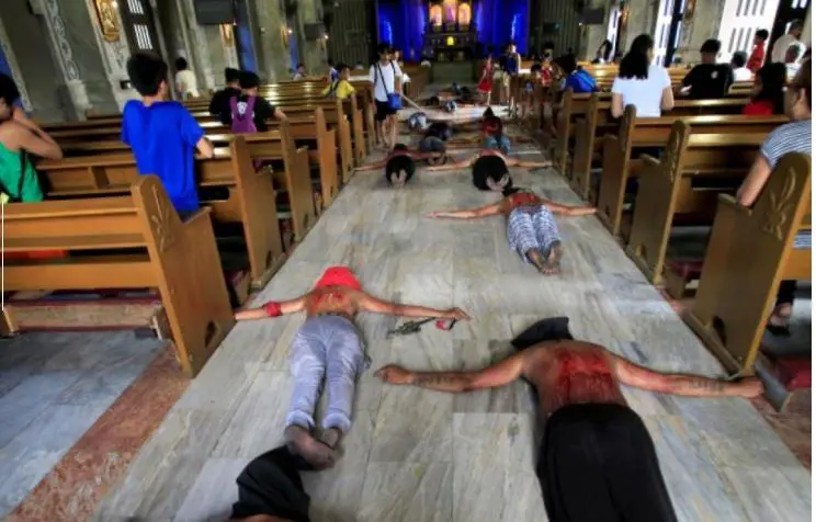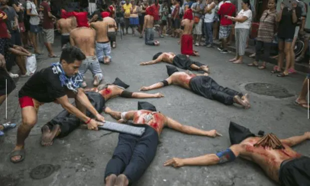 En la localidad de San Fernando se reunieron, como cada año, miles de devotos que practicaron los tradicionales y sangrientos rituales de penitencia para emular el calvario que padeció Cristo. La catedral de esta localidad de la provincia de Pampanga, situada a unos 62 kilómetros al norte de Manila, fue el punto de encuentro de hombres de todas las edades que llegaron descalzos.