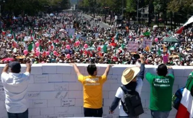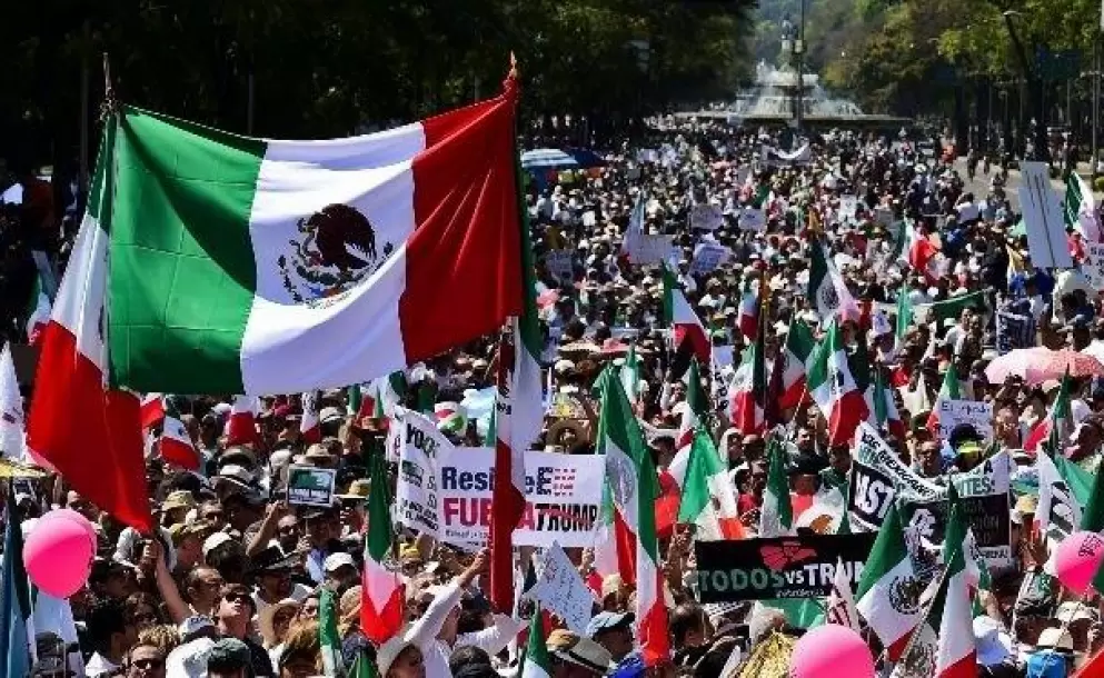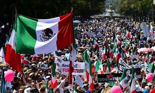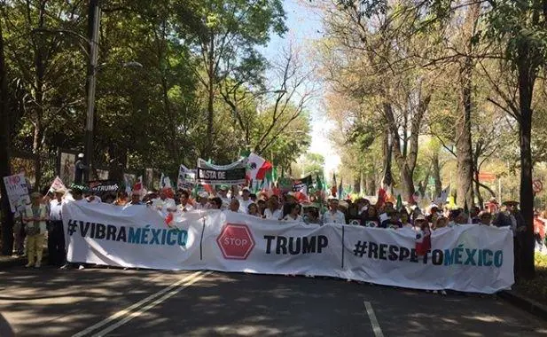 Decenas de miles de personas vestidas de blanco o con banderas mexicanas se congregaron hoy en las principales ciudades de México para manifestarse contra las políticas migratoria y comercial del presidente de los Estados Unidos, Donald Trump.