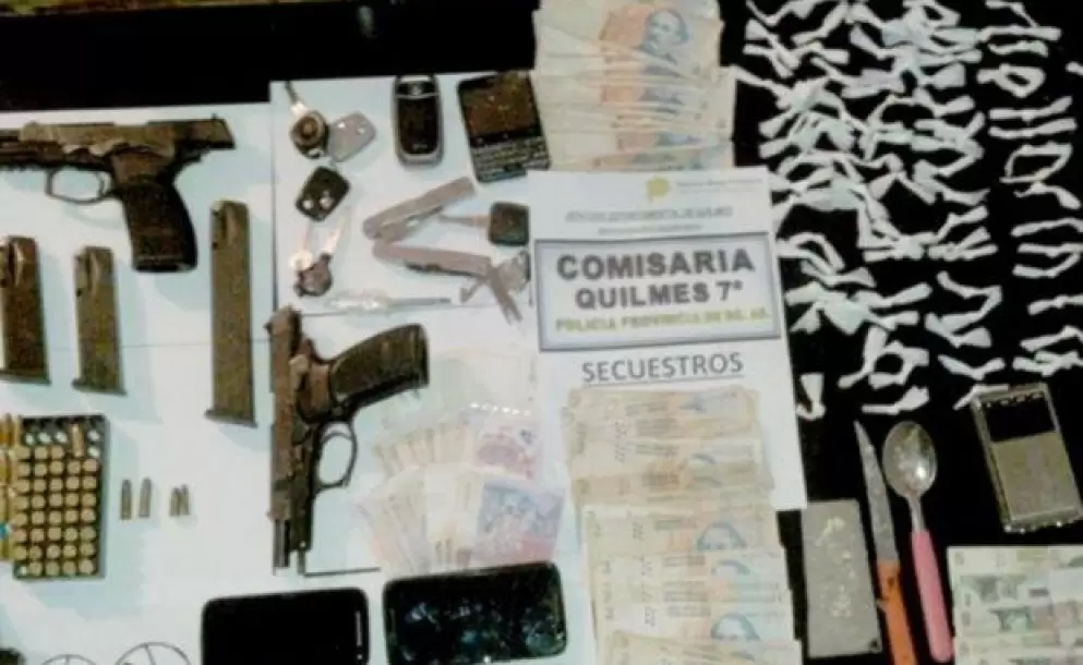 La policía secuestró "50 cartuchos 9 milímetros de punta teflonada, conocidas como 'matapolicías' y 100 con punta de plomo encamisada; una pistola Bersa 9 milímetros, una Bersa Thunder que tenía pedido de secuestro por hurto simple y una réplica de pistola 9 milímetros; varios cargadores, 67 dosis de paco y siete piedras de clorhidrato de cocaína; 3.750 pesos, siete llaves de distintos autos, cuatro dispositivos de alarma, tres yugas y varios electrodomésticos"