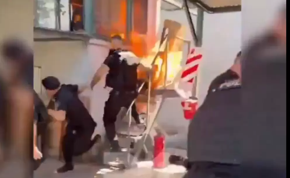 El personal policial reaccionó rápidamente para sofocar las llamas con extintores de polvo químico. A pesar de sus esfuerzos, el trabajador sufrió quemaduras graves en varias partes del cuerpo. Tres policías también resultaron heridos con quemaduras leves en brazos y manos mientras intentaban rescatarlo.