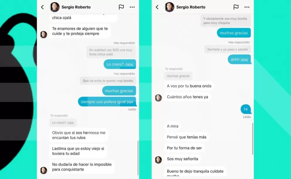 Sin ir más lejos, uno de los textos que la mujer encontró en la cuenta de TikTok de la adolescente dice: "Obvio que sos hermosa, me encantan tus rulos. Lástima que estoy viejo, si tuviera tu edad no dudaría de hacer lo imposible para conquistarte". En otro tramo de la conversación, cuando la menor le aclaró que tenía 14 años, el sospechoso le escribió: "Pensé que tenías más, por tu forma de ser. Sos muy señorita. Bueno, te dejo tranquila, cuidate".