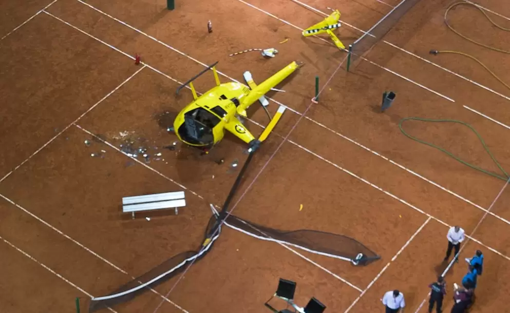 El Parque Manuel Belgrano, el histórico ex KDT de Palermo, se convirtió este jueves en el epicentro de un episodio tan inesperado como dramático: un helicóptero se precipitó sobre las canchas de tenis, dejando a cuatro personas heridas y una escena que, según los primeros rescatistas, podría haber terminado en tragedia mayor. La aeronave, perteneciente a la empresa Hangar Servicio, quedó volcada sobre su costado izquierdo, con la cola partida, las hélices arrancadas y el piso completamente roto.
