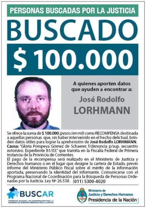 El “Ruso” Lorhman es uno de los mayores enigmas del delito argentino. Cometió al menos ocho secuestros extorsivos y es señalado como el líder "la banda de la triple frontera", a quienes se les adjudica el secuestro del joven correntino Christian Schaerer, en septiembre de 2003, por cuyo rescate se pagaron 240.000 dólares, pero nunca apareció. Por Lorhmann se ofrecen 300 mil pesos de recompensa.