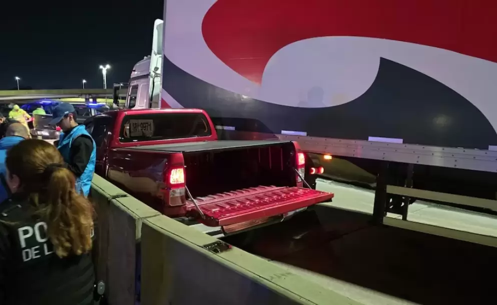 "Tras un operativo cerrojo, la camioneta fue bloqueada en la autopista Cámpora, donde el sospechoso intentó atropellar a los oficiales", detallaron fuentes policiales a la agencia Noticias Argentinas. Para frenarla, los efectivos dispararon con balas de plomo contra la misma, la cual perdió el control e impactó contra el camión Mercedes Benz.