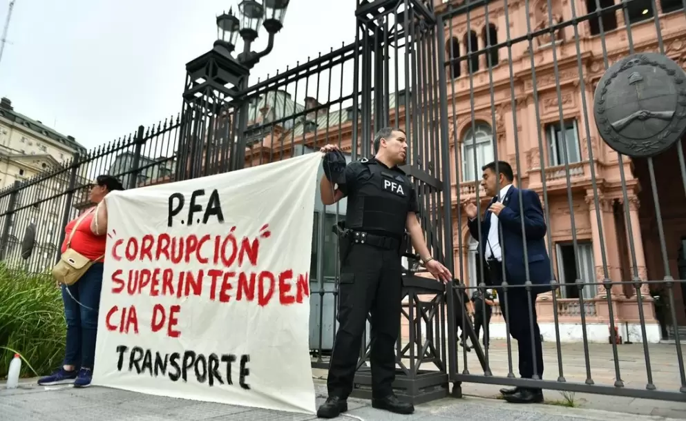 El protagonista del reclamo fue identificado como Miguel Ángel Montiel, cabo de la Policía Federal, actualmente destinado a la Comisaría Belgrano Norte de la Ciudad de Buenos Aires. En la mañana de este martes, Montiel se apostó frente a la sede del Poder Ejecutivo con una pancarta en la que denunciaba irregularidades en la Superintendencia de Transporte. La escena activó de inmediato los protocolos de seguridad: se montó un cordón policial y, minutos después, el efectivo fue trasladado a la sede de la PFA para que realice una presentación ante Asuntos Internos, según confirmaron fuentes oficiales.