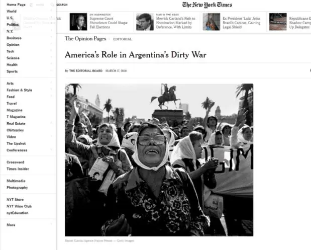 "El rol estadounidense en la guerra sucia argentina", fue la frase que utilizó el prestigioso diario para solicitarle a Barack Obama que haga público el papel de Estados Unidos durante dictadura militar.