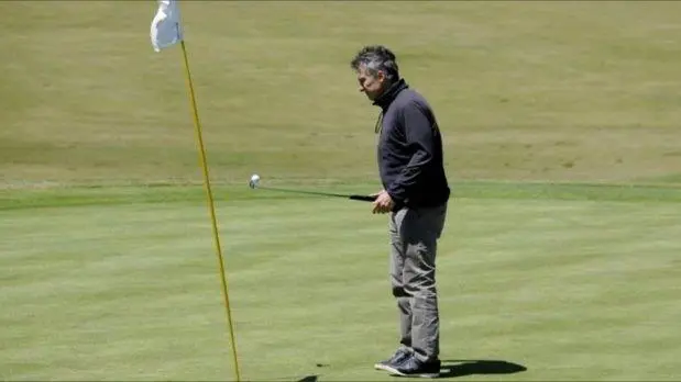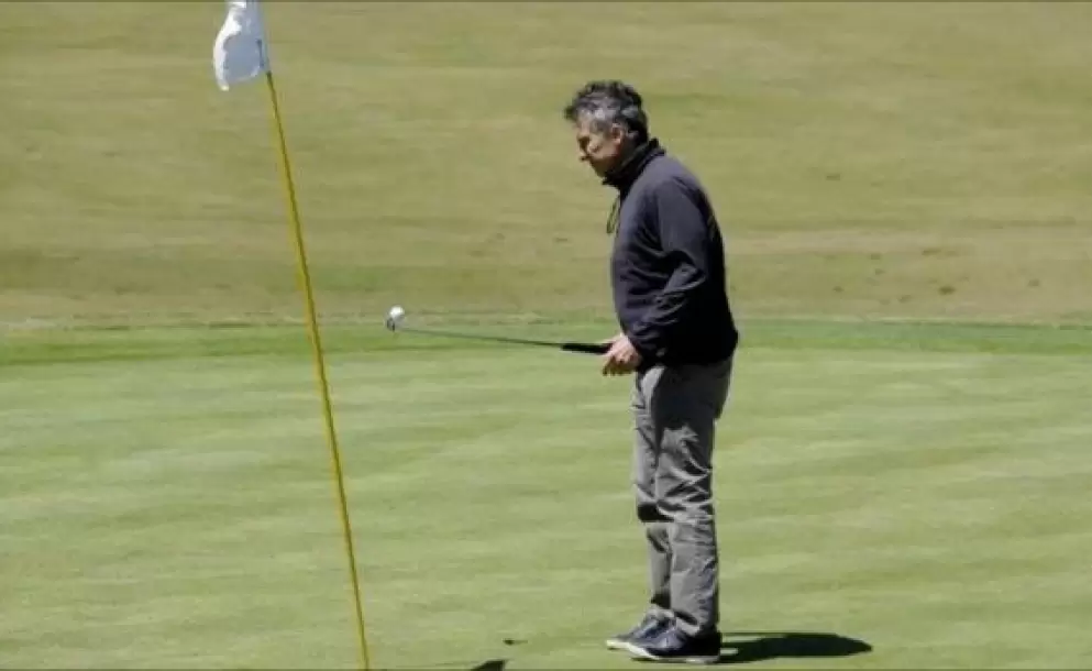 Macri con algunas complicaciones en el green de uno de los hoyos del nuevo campo.