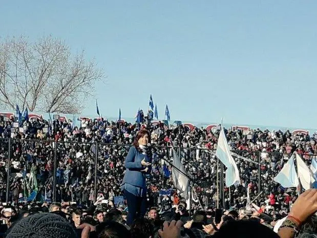 La ex presidenta Cristina Kirchner encabezó el acto en el estadio de Arsenal de Sarandí ante más de 25 mil personas, con el objetivo de lanzar el frente Unidad Ciudadana. "Quiero decirles que les había pedido que cada uno viniera con su bandera porque de esta manera podemos vernos, podemos escucharnos, podemos mirarnos a los ojos, algo que tanta falta nos hace a los argentinos", sostuvo entre lágrimas, al inicio del acto.