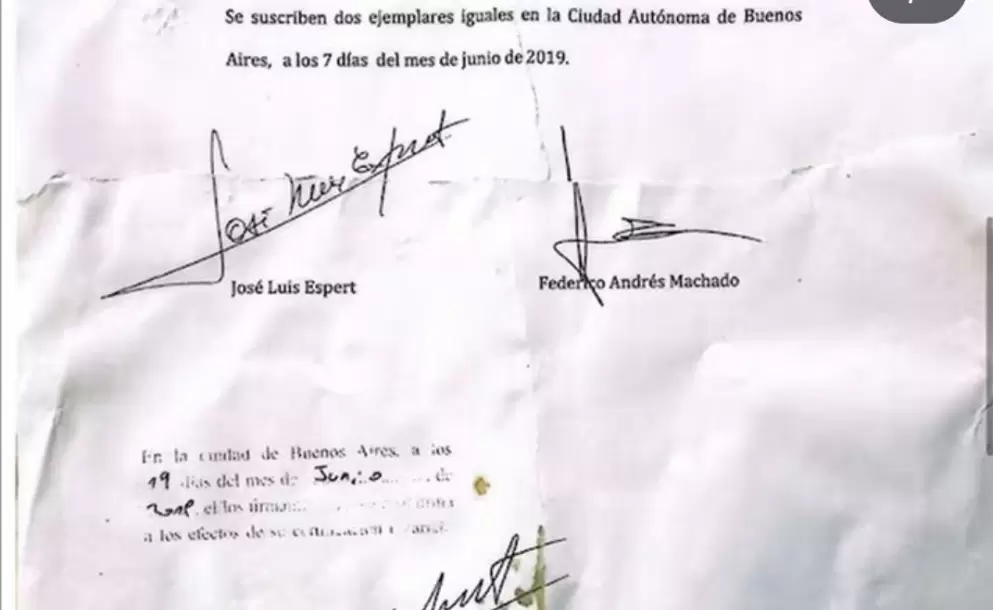 El documento, que Machado aparentemente intentó destruir (con muy pocas ganas) antes de su detención, coincide con el contrato revelado horas antes: un acuerdo de "locación de servicios" firmado el 7 de junio de 2019, apenas quince días antes de que Espert se lanzara oficialmente como candidato presidencial. Según el texto, el economista debía recibir 100.000 dólares al momento de la firma y el resto, en nueve cuotas mensuales de igual monto, transferidas por "Minas del Pueblo", una empresa de Guatemala controlada por Machado y actualmente intervenida por la justicia de Estados Unidos.