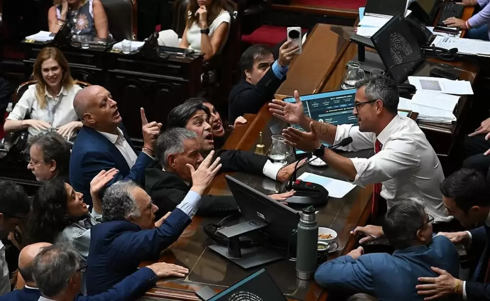 El debate arrancó con un fuerte cruce cuando el presidente de la Cámara, Martín Menem, sometió a votación a mano alzada el plan de labor. La decisión desató la indignación de Unión por la Patria, cuyos legisladores se precipitaron hacia el estrado para exigir que rectificara el procedimiento. Germán Martínez encabezó el reclamo, secundado por Paula Penacca, Eduardo Valdés, Lorena Pokoik, Horacio Pietragalla y Nicolás del Caño.