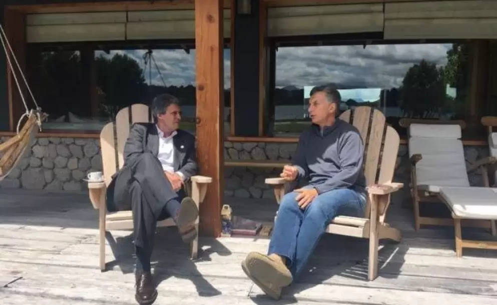 Aún enfundado en el "traje" de Ministro Prat Gay que estuvo un año al frente de la cartera económica se encontró con un distendido e informal Macri en el country de Cumelén donde el presidente se aloja con su familia.