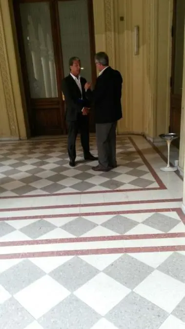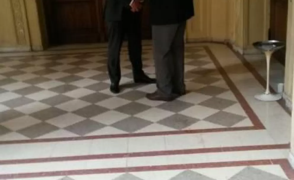 El hermano de Daniel Scioli charlando con un funcionario del Gobierno nacional.