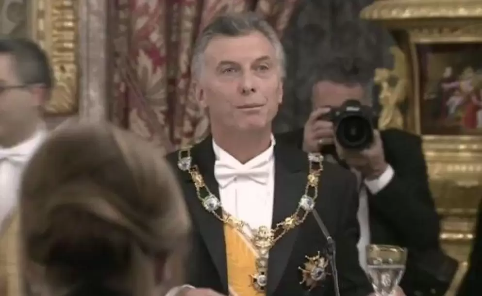 El "gag" presidencial ocurrió durante el agasajo que los Reyes de España le dieron al Presidente y su mujer Juliana Awada en la noche española.
