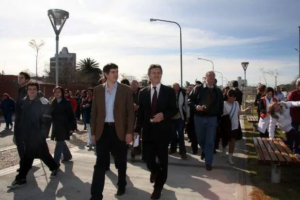 Año 2009. Marcos Peña acompaña a Macri en la inauguración de una plaza en Villa Pueyrredón.
