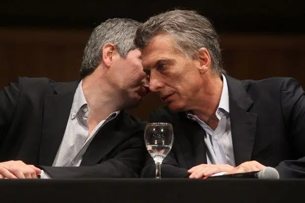 Con un poco habitual look de saco y corbata, Marcos Peña en una reunión con Mauricio Macri.