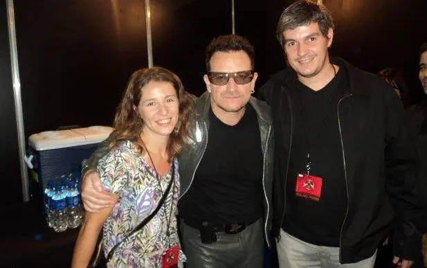 Fan de U2, pudo conocer a Bono junto a su mujer, Luciana.