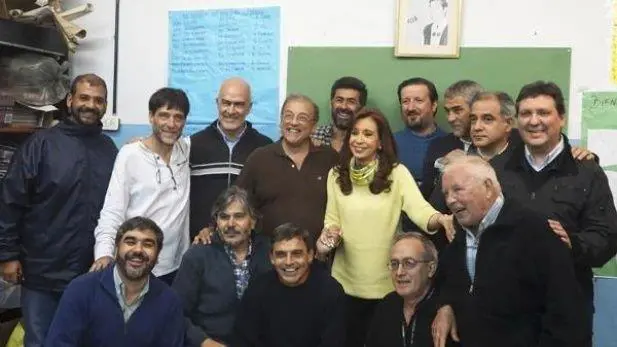 Cristina Kirchner con el grupo del padre Paco Oliveira y el cura De la Serna.