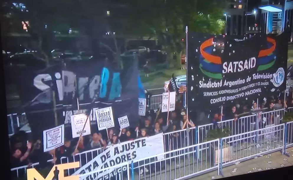Son los y las trabajadoras de la televisión las que se manifestaron en las afueras del hotel Hilton donde se lleva adelante la premiación más importante del año.