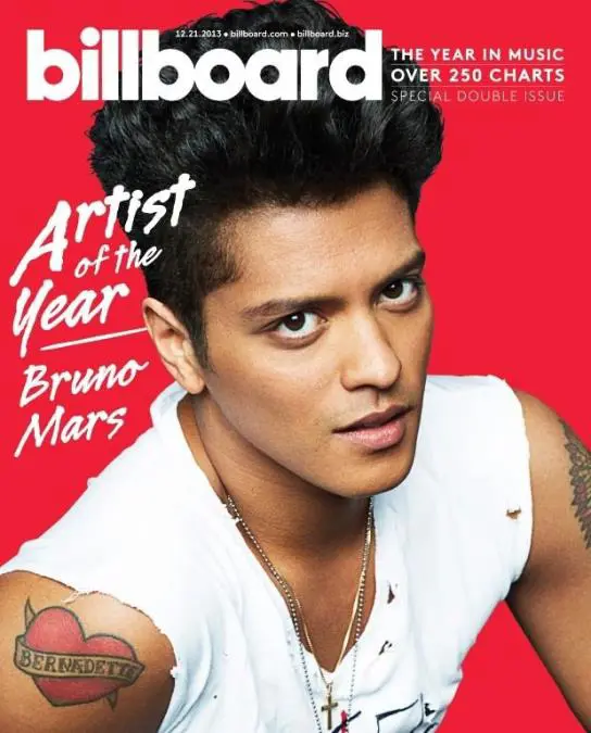 Bruno Mars y el nombre de su mamá, en la tapa de la Billboard en 2013.