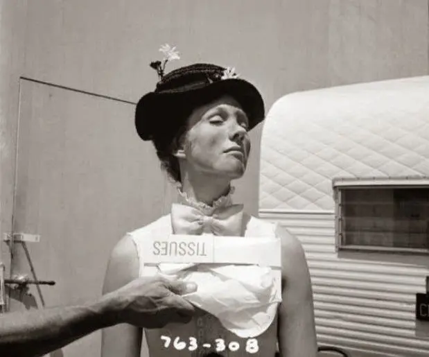 El accidente tuvo lugar durante la grabación de una de las primeras escenas de la película cuando, tras leer el “anuncio escrito por Jane y Michael Banks”, la niñera desciende del cielo ayudada por su paraguas mágico y se presenta en la casa número 17 de la ficcional calle londinense “Cherry Tree Lane”.