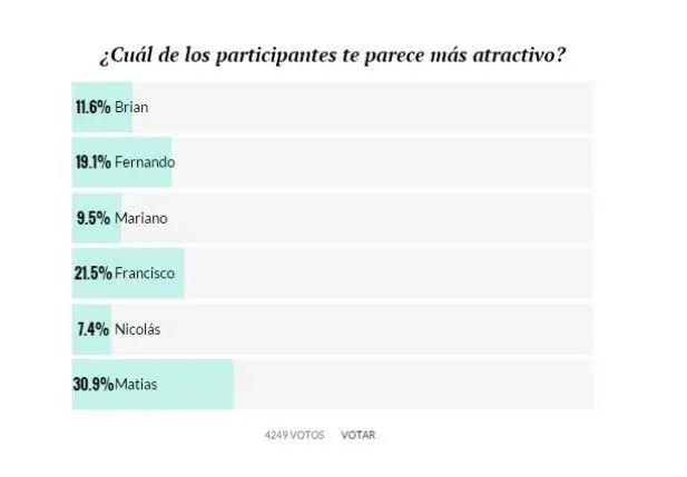 Según una encuesta realizada por BigBang, el participante más atractivo es Matías ,el joven misionero de 19 años, que reingresó a la casa luego de ser expulsado por su compañeros. El público siempre lo apoyó desde el comienzo del juego.